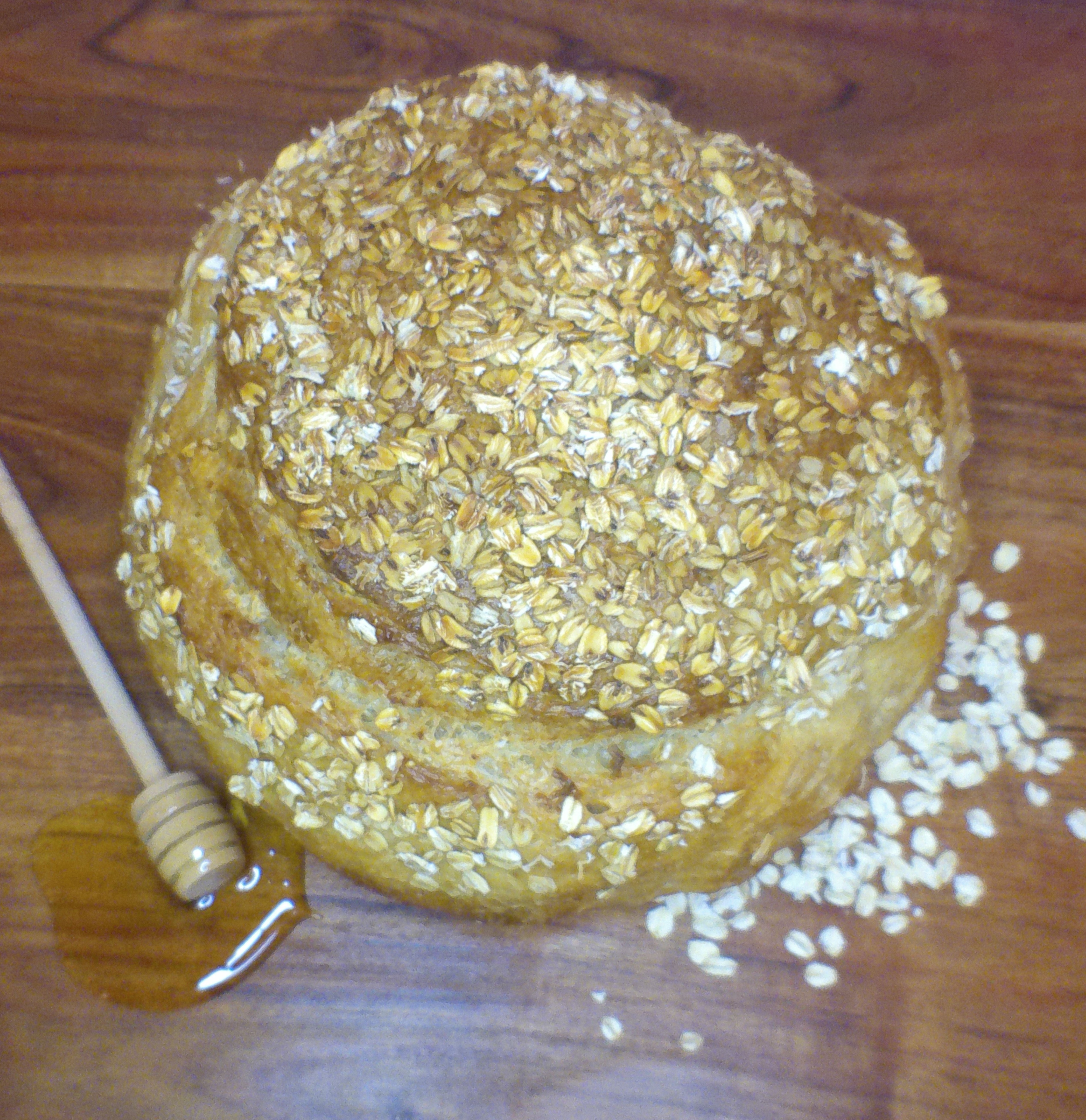 Enjoy the wholesome goodness of our Honey Oat Sourdough. This loaf is lightly sweetened with honey and sprinkled with oats, making it a perfect choice for breakfast or a snack.